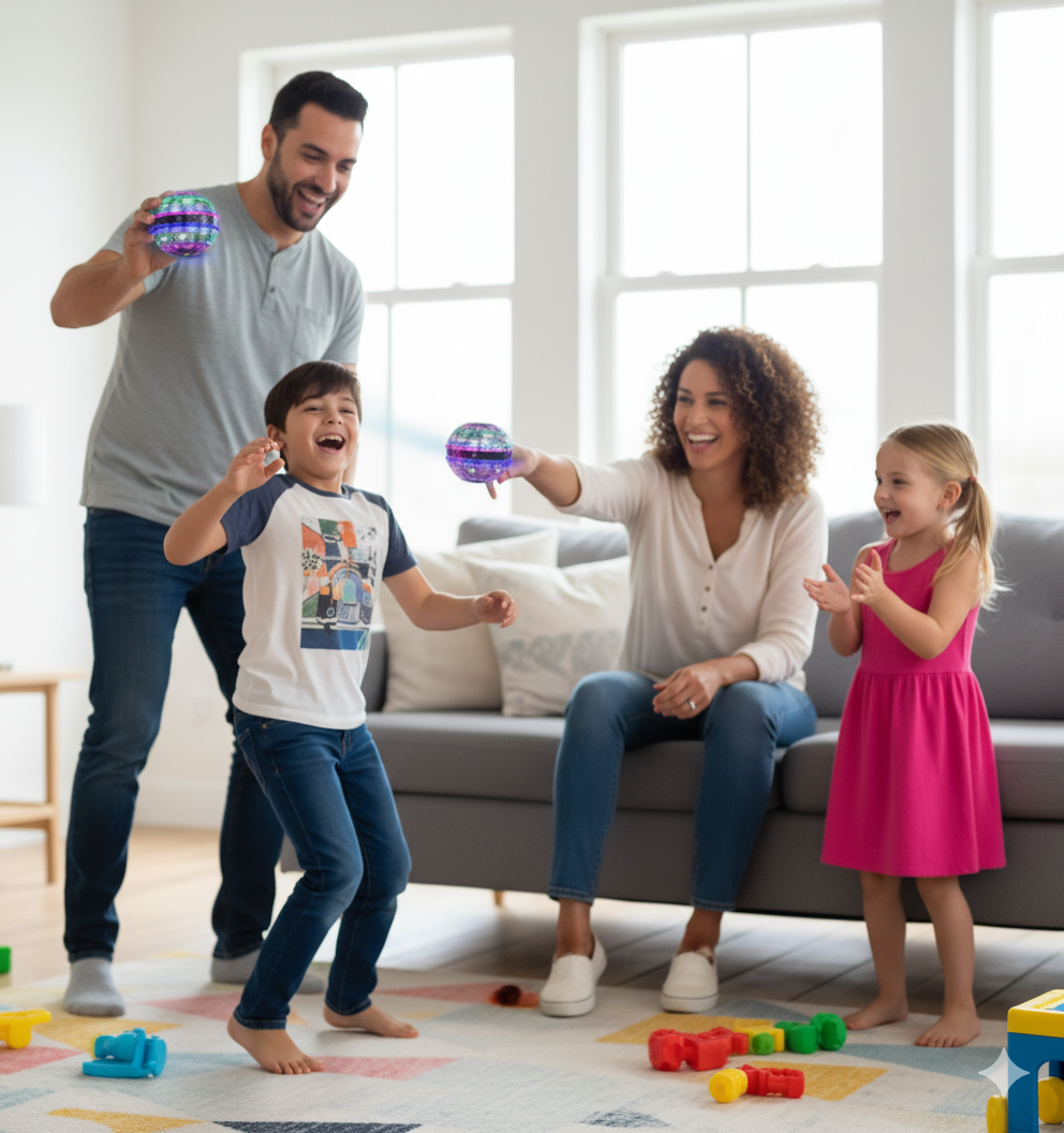 Bring everyone together with the flying Orb Ball — the toy that gets kids moving, laughing, and playing with you instead of staring at a screen