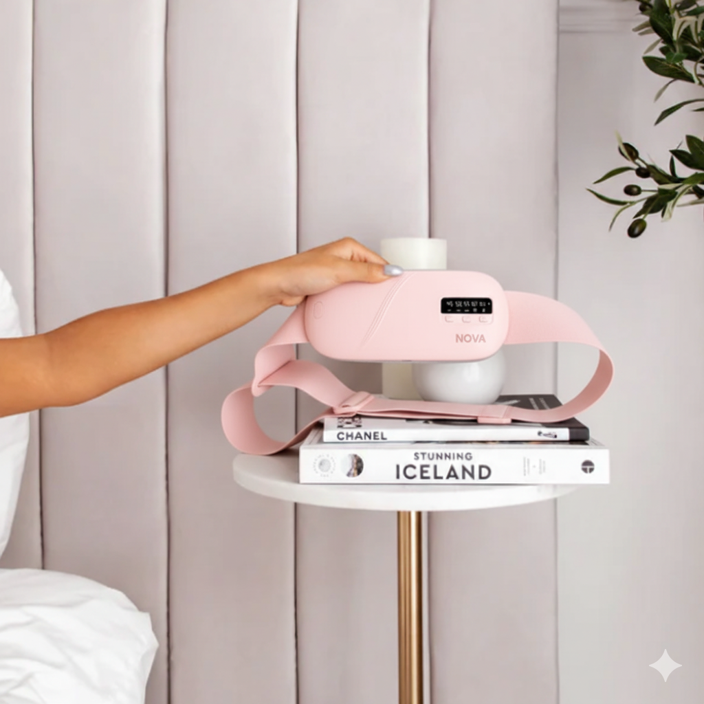 Period cramps happen when the uterus releases prostaglandins that make it contract. If levels spike, the cramps can feel stronger. Nova combines calming heat with rhythmic massage to support blood flow and muscle relaxation, providing natural, drug-free comfort when cramps hit.