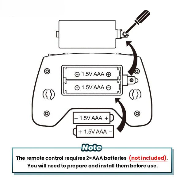 Expect up to 2 hours of play per charge. Recharge via the included USB cable (about 30–40 minutes). An indicator light shows charging status. The remote uses standard batteries (not included).